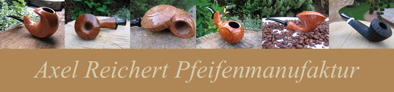 Es verlassen sowohl Pfeifen mit glatter Oberfläche als auch sandgestrahlte Modelle meine Pfeifen-Werkstatt. Je nach Modell oder Kundenwunsch erhalten die Pfeifen Applikationen aus Edelhölzern, Horn, Bambus oder Mammut-Elfenbein. Die von mir handgefertigten Mundstücke werden wegen der Bissfreundlichkeit ausschließlich aus Kautschuk hergestellt und dem Holm exakt angepasst, je nach Wunsch mit oder ohne Filter. Handgemachte Reichert-Pfeifen findet man nur in exklusiven Pfeifengeschäften. Mein Ziel ist es, qualitativ hochwertige Pfeifen herzustellen, die jedem Pfeifenliebhaber echten Hochgenuß beim Rauchen bieten.